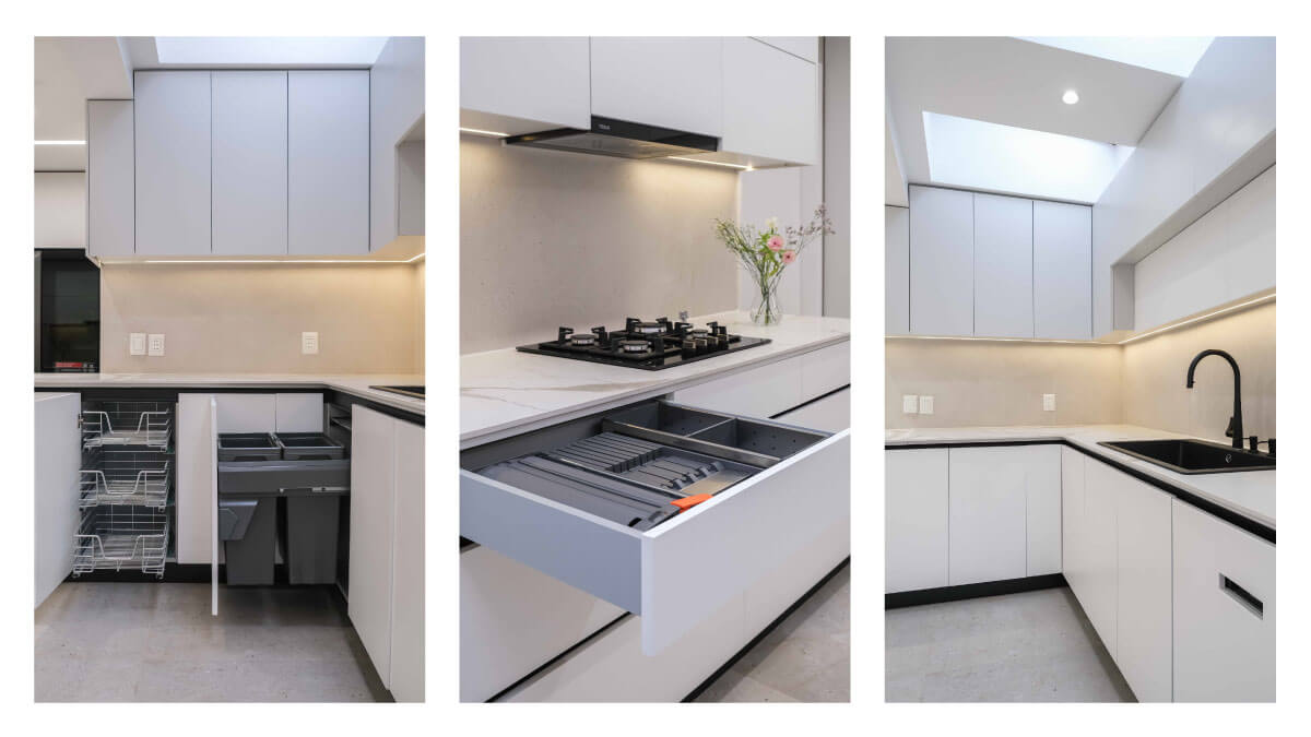 Este proyecto no solo transformó la cocina y el lavadero de esta familia coreana en un espacio funcional y estéticamente impecable, sino que también asegura durabilidad y sostenibilidad a largo plazo. Una remodelación que refleja la importancia de invertir en materiales de calidad y en un diseño que mejora la vida cotidiana, invitando a disfrutar y compartir en cada rincón.